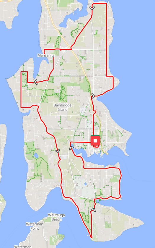 Bainbridge Island is hilly with roads of various levels of stress (sidewalks, road shoulders, no shoulders, etc.). We do our best to keep routes on quieter, low traffic roads, and minimize hills on the family route. With that said, there are a few spots with more traffic or busy traffic crossings. For these we have additional signage and encourage use of traffic light crosswalks. Please be courteous to all road users and make sure to obey all traffic laws.